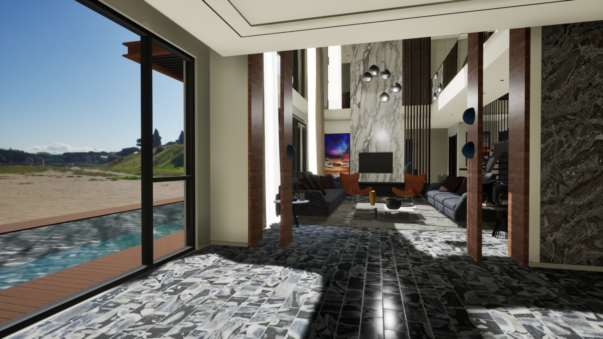 VR teknolojisi ile geliştirilmiş mimari tasarım ve görselleştirme projelerimizin kapsamını ve detaylarını bulabilirsiniz. Müşterilerimize en yenilikçi ve etkileyici çözümleri sunmak amacıyla, her projede ileri düzeyde VR mimari tasarım ve görselleştirme teknikleri kullanılmıştır. Bu projeler, yalnızca yapısal bütünlüğü sağlamakla kalmayıp aynı zamanda estetik açıdan çarpıcı ve kullanıcı dostu mekanlar yaratmayı hedeflemektedir. Her proje, sanal gerçeklik teknolojisiyle mimari tasarımın sınırlarını zorlayarak müşterilerimize projelerini tamamlanmadan önce deneyimleme imkanı sunar.