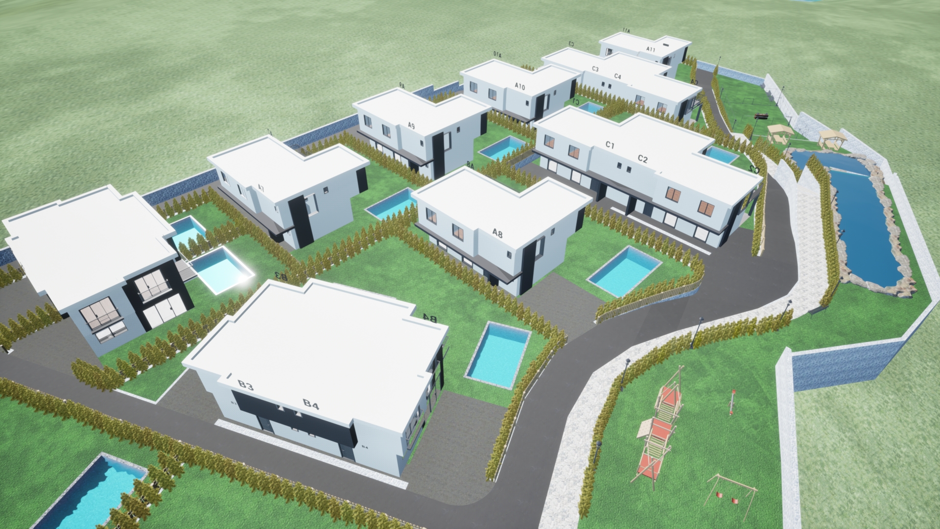 Mimari Modelleme ve VR keşfi ile inşaat aşaması başlamadan sitede mülk sahibi olmak isteyen müşteriler villalarını önceden deneyimledi.